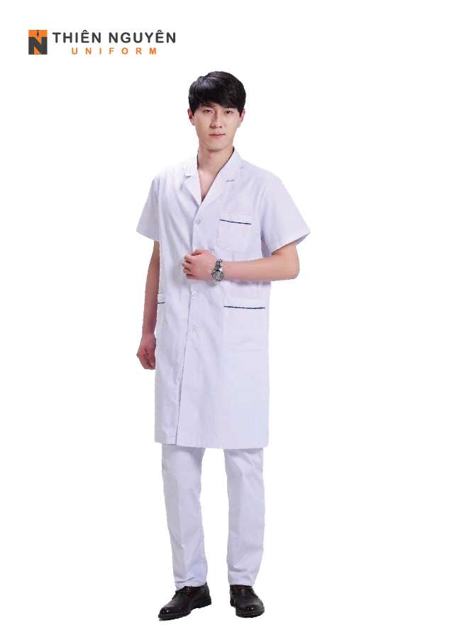 Đối với áo của bác sĩ thì cần phải có quy định cổ áo bẻ Danton, chiều dài áo phải qua gối 5-10cm, áo trắng. Vạt áo sau xẻ tới mông nam và không xẻ tà sau, nữ tạo sự kín đáo và lịch sự. Áo Blouse trắng phải đủ có 3 túi, với 2 thiết kế tay dài và tay ngắn. Với khoa truyền nhiễm có màu hồng để dễ nhận diện.