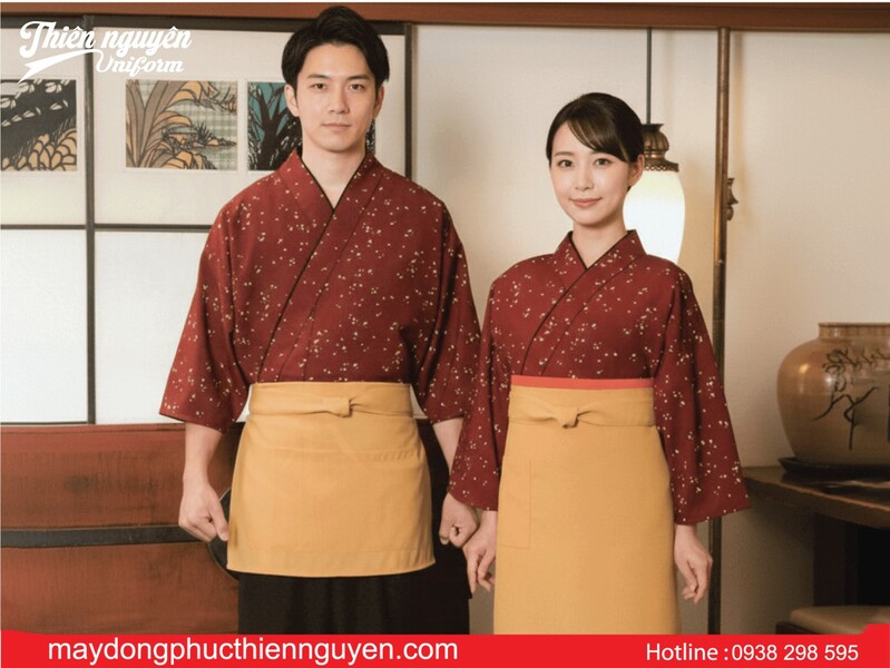 Kết hợp: Đây là một phần quan trọng trong tổng thể đồng phục nhà hàng Nhật Bản, tạo nên bản sắc riêng biệt không thể trộn lẫn.