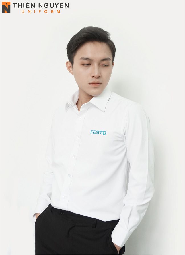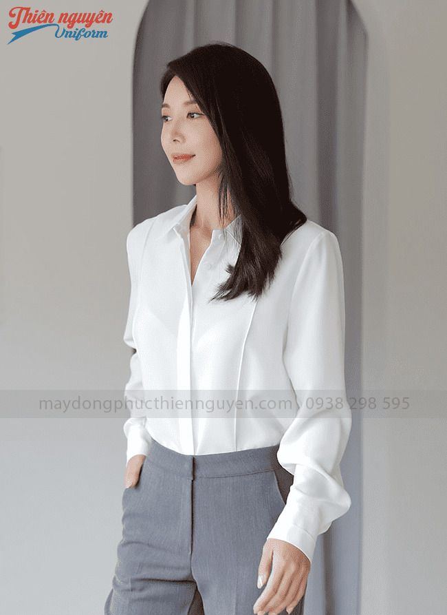 Áo sơ mi đồng phục: Áo sơ mi luôn là lựa chọn phổ biến cho đồng phục công sở. Áo sơ mi có thể kết hợp với quần âu hoặc chân váy, tạo nên vẻ ngoài lịch lãm và chuyên nghiệp. Các màu sắc phổ biến là trắng, xanh dương và các gam màu pastel.