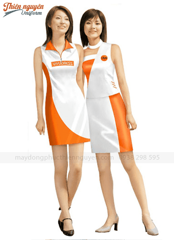 Phần váy xóe, áo tách ra tạo cảm giác hoạt náo, trẻ trung và vô cùng năng động. Cách thiết kế mang đậm chất năng động đến nhân viên. Do đó, đây là sản phẩm phù hợp với không gian sôi động đòi hỏi sự xuất hiện của nhiều người như siêu thị, trung tâm thương mại. Một số sự kiện có thể kể đến như là giới thiệu chương trình khuyến mãi, sản phẩm tiêu dùng mới.