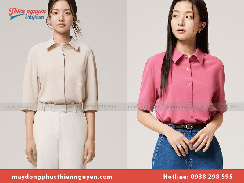 - Kiểu dáng: Hình dạng, kiểu may, đặc điểm thiết kế của đồng phục (áo sơ mi đồng phục công sở, áo thun, quần tây, váy...).