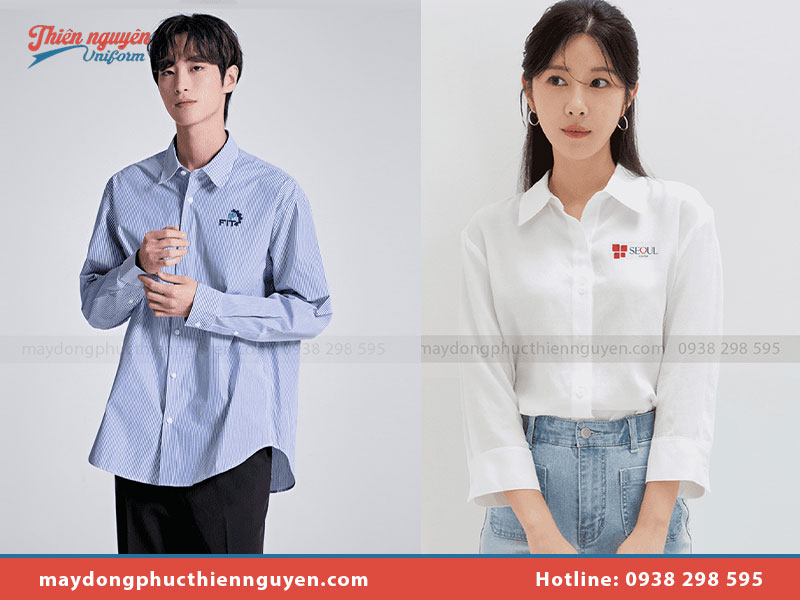 Những chiếc áo sơ mi được thiết kế đồng bộ với màu sắc và logo của công ty sẽ giúp tạo ấn tượng mạnh mẽ với khách hàng và đối tác.