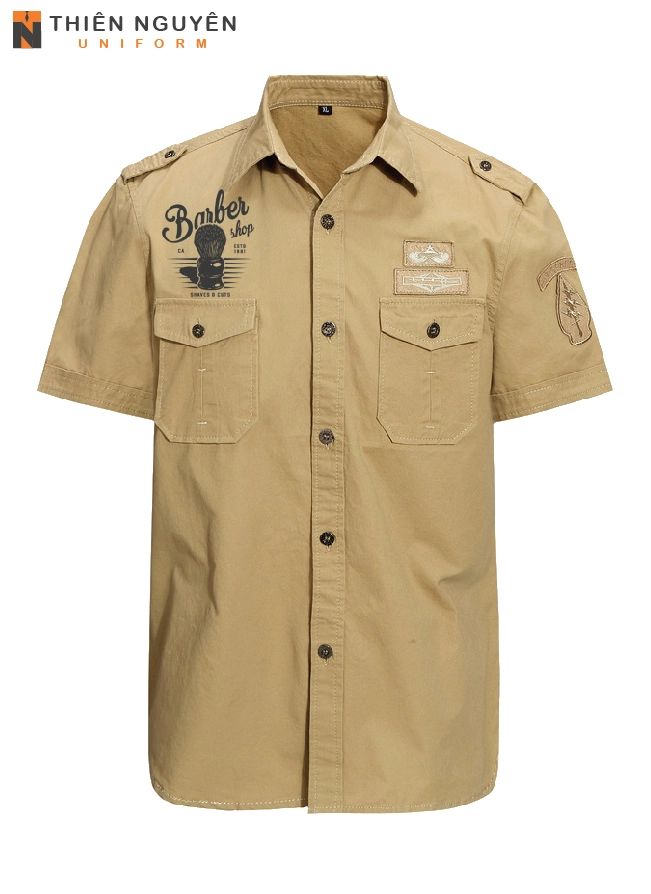 Nếu bạn muốn quảng bá thương hiệu của mình cũng như thông qua mẫu áo có thể biết đến được tiệm salon của mình thì đồng phục barber là trang phục không nên bỏ qua đâu đấy
