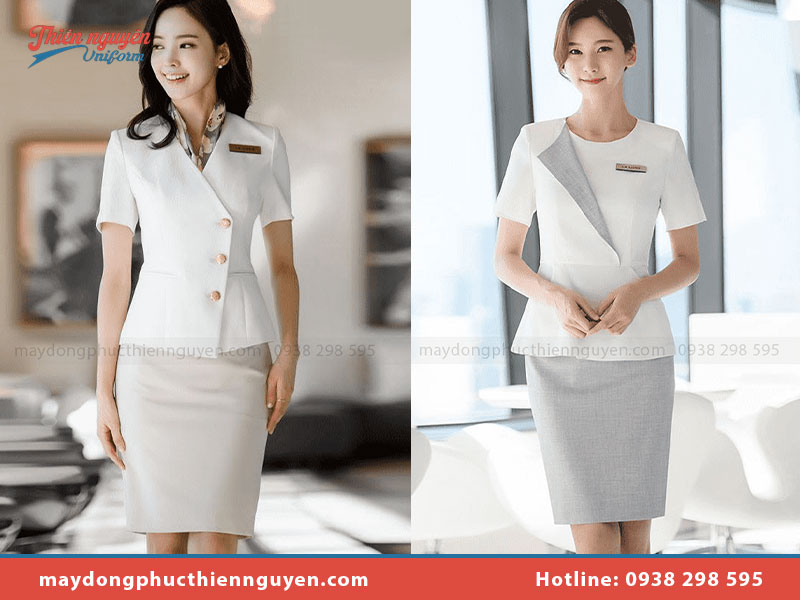 Đây là mẫu đồng phục kinh điển, mang đến vẻ ngoài chuyên nghiệp và sang trọng. Các mẫu đồng phục áo vest có thể được may với chất liệu cao cấp như len, dạ hoặc vải tweed, phối cùng chân váy bút chì hoặc quần âu cùng tông màu.