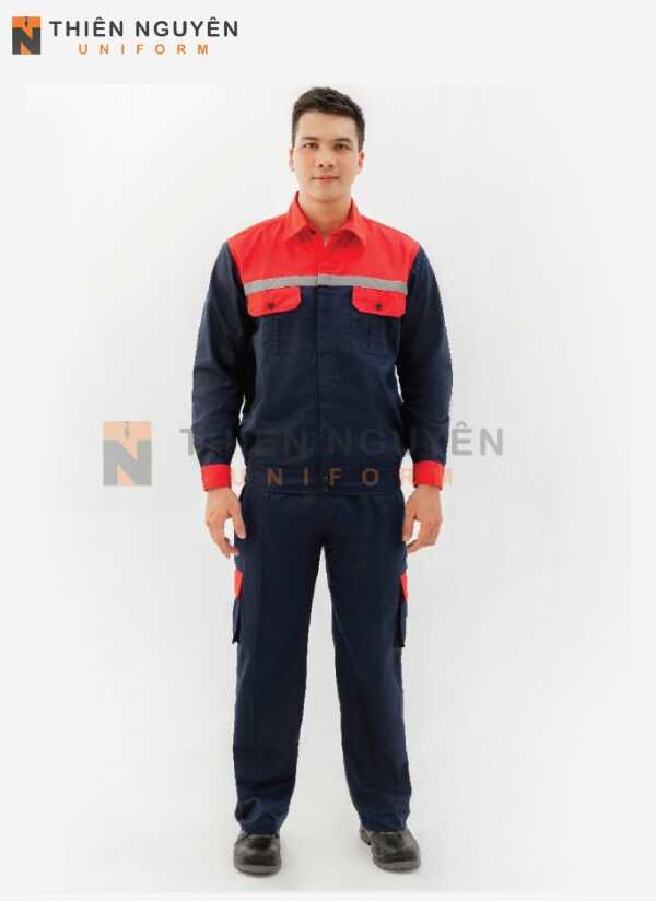 Hình ảnh sản phẩm được chia sẻ trên trang web của công ty May Thiên Nguyên cho thấy chất lượng sản phẩm rất tốt, được may kỹ lưỡng và chắc chắn. Đồng phục bảo hộ lao động này có thiết kế đơn giản nhưng vẫn đảm bảo sự thoải mái cho người sử dụng trong quá trình làm việc.