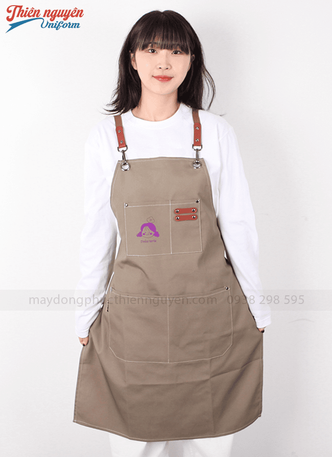- Kiểu dáng: Tạp dề phải có kiểu dáng đẹp mắt, thoải mái, dễ vận động. Phần thân trước nên có thiết kế gắn logo, slogan của nhà hàng, quán ăn.