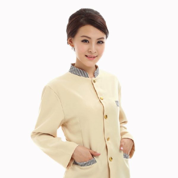 Tính thẩm mỹ và phong cách: Đồng phục cần phản ánh phong cách và thương hiệu của nhà hàng. Việc chọn vải cần dựa trên màu sắc, độ bóng, hoặc kết cấu vải phù hợp với hình ảnh mà nhà hàng muốn truyền đạt. Ví dụ, vải có kết cấu mịn màng và màu sáng thường tạo ra ấn tượng sang trọng hơn.